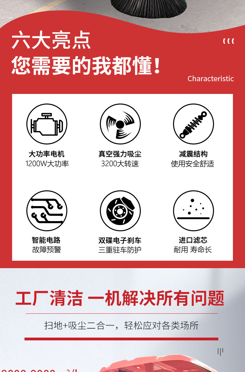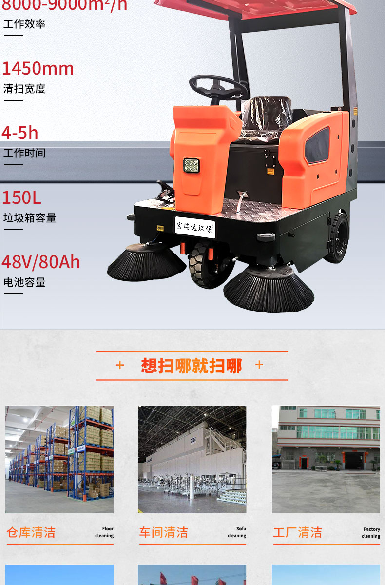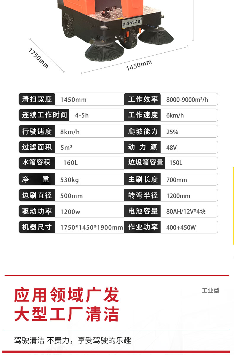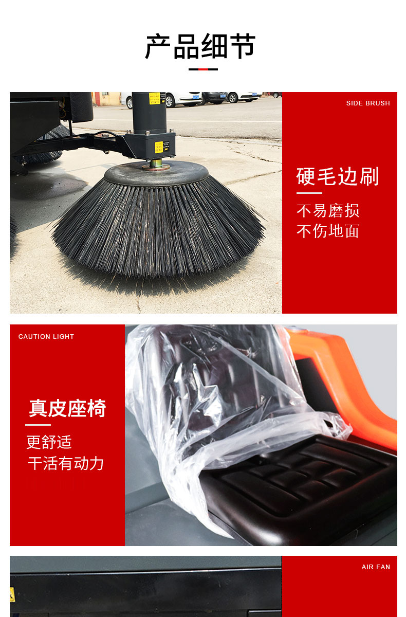 HRD-1450半封閉駕駛式掃地車160L大容量水箱,轉(zhuǎn)彎半徑小,方便靈活,清掃寬度可達1450mm,可連續(xù)工作4-5小時,灰塵 石子 落葉 煙頭煙灰 木屑 瓜果等一掃而凈,特別適合煤礦、水泥廠、雕刻廠、面粉廠、建材廠、金屬冶煉廠、工廠車間、商場、車站、學校、機場外圍、廣場公園、景區(qū)等場所使用。