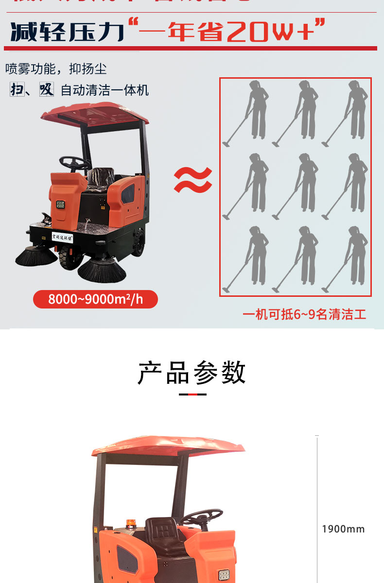 - HRD-2000S全封閉駕駛式掃地車配置雙風機系統(tǒng),具有強大的吸塵能力,清掃寬度大可達2米,一小時工作量相當于6-8名清潔工的工作量,可連續(xù)工作6-8小時,特別適合煤礦、水泥廠、雕刻廠、面粉廠、建材廠、金屬冶煉廠、工廠車間、商場、車站、廣場公園、景區(qū)等場所使用。